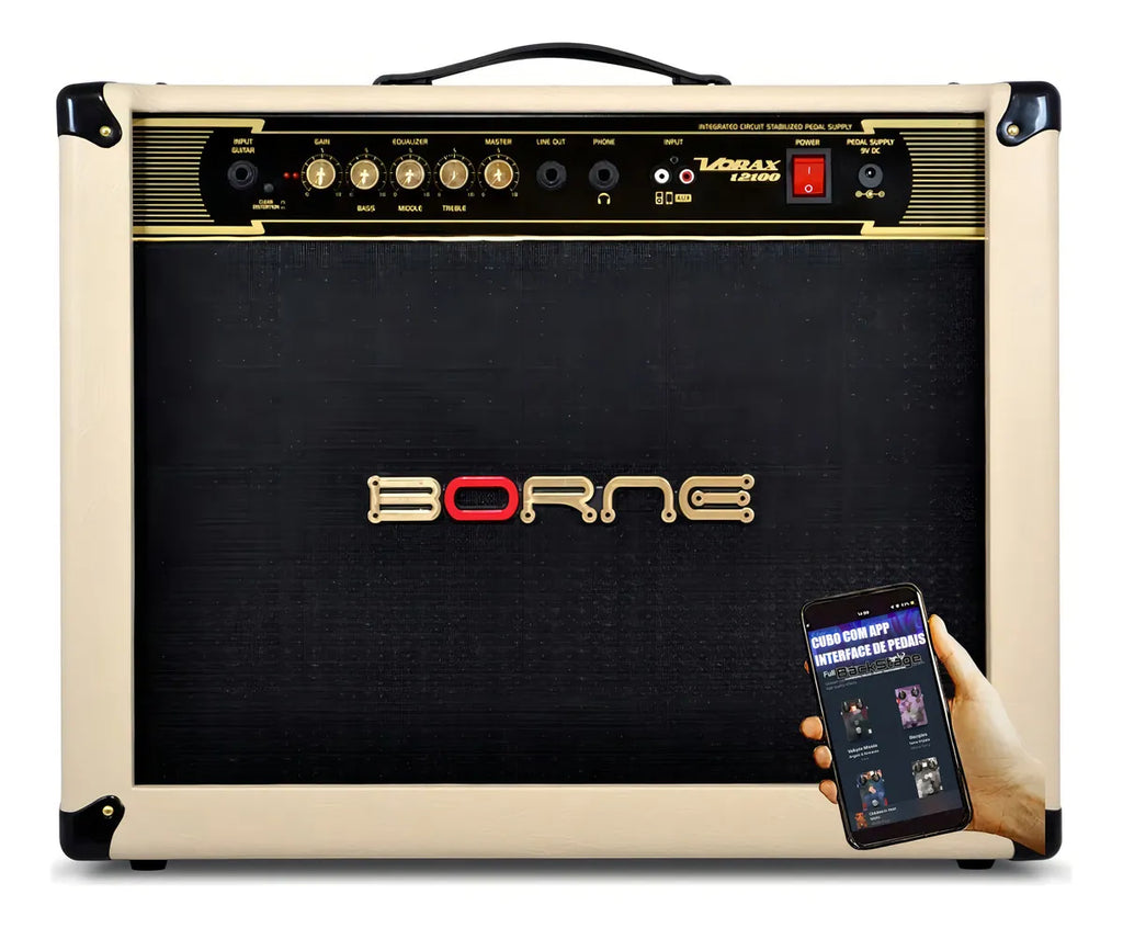 Combo transistorizado 2 canais (clean e overdrive), 01 falante 12", equalização de 3 bandas, entrada "app" e saídas "line out" e "phones" e alimentação auxiliar 9v para pedais.
